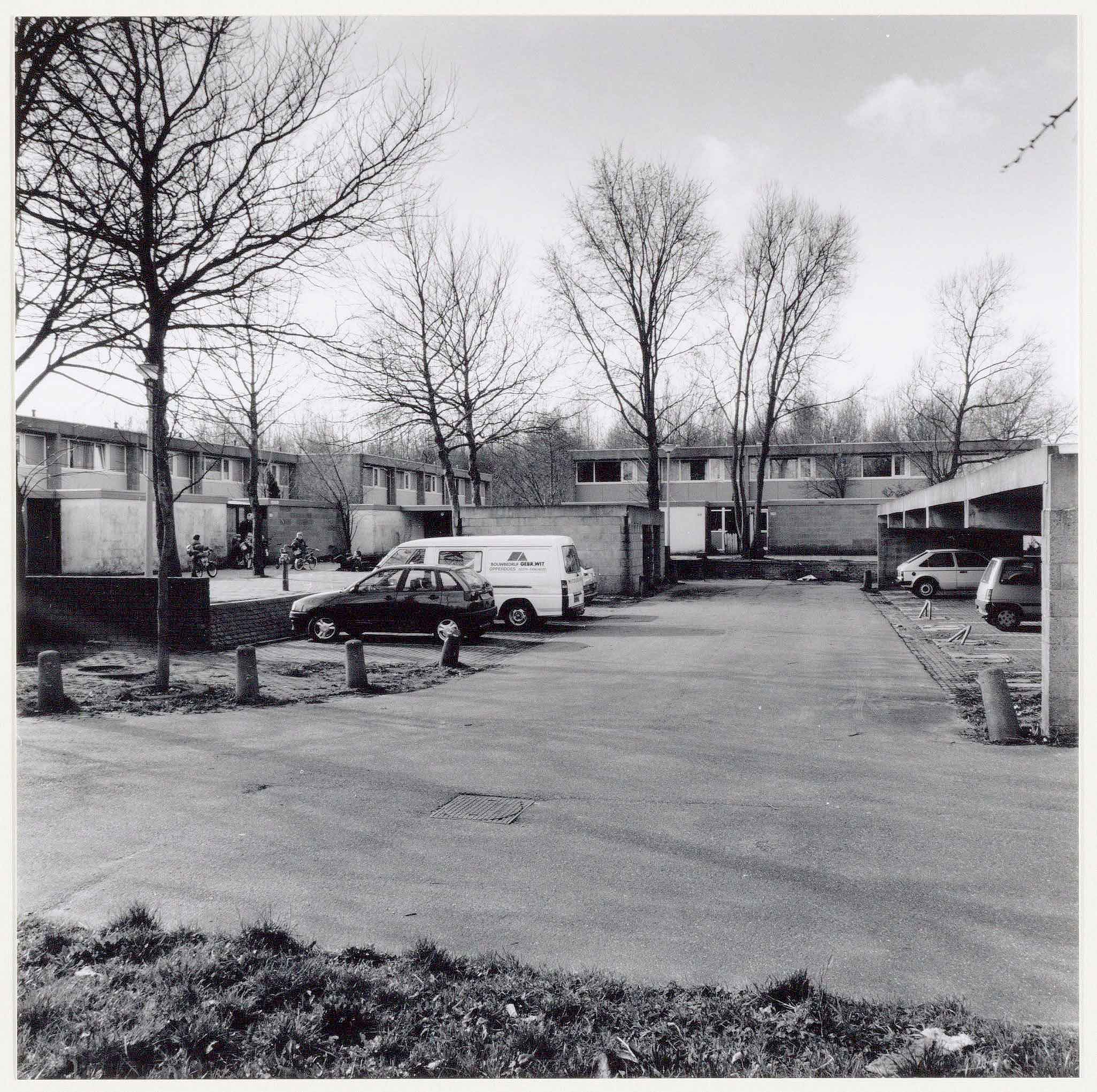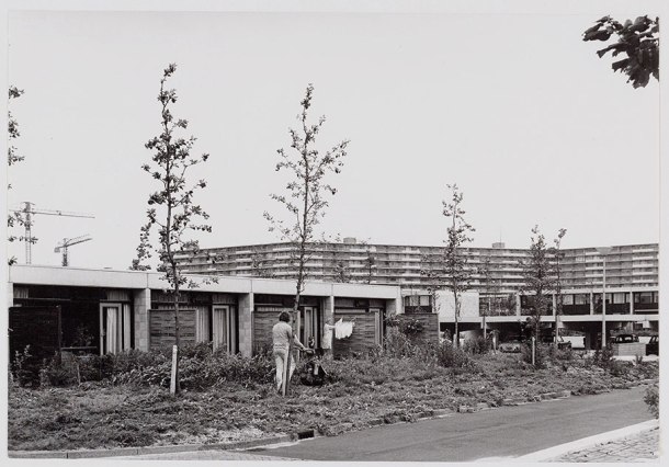De woningen zelf hebben de allersimpelste vorm met een gevel die zo’n 80 cm naar binnen is getrokken t.o.v. het betonnen raster, waarin ze is ‘opgehangen’. En na al die jaren oogt dat minimalisme nog altijd als zeer verfrissend. Het kleinere en eerst gebouwde Kelbergen ligt er evenwel veel beter bij. Er is mooier en veel meer groen. De indertijd verplichte collectieve ruimte – een grote platte doos – steekt ook mooi in het brede water dat het buurtje van de Gaasperdammerweg scheidt.